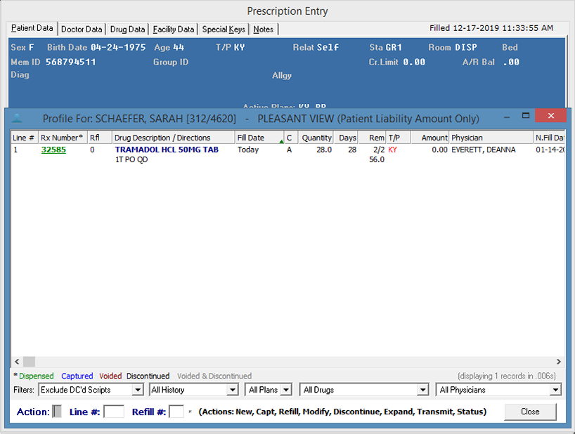 Enter an m in the Action field.