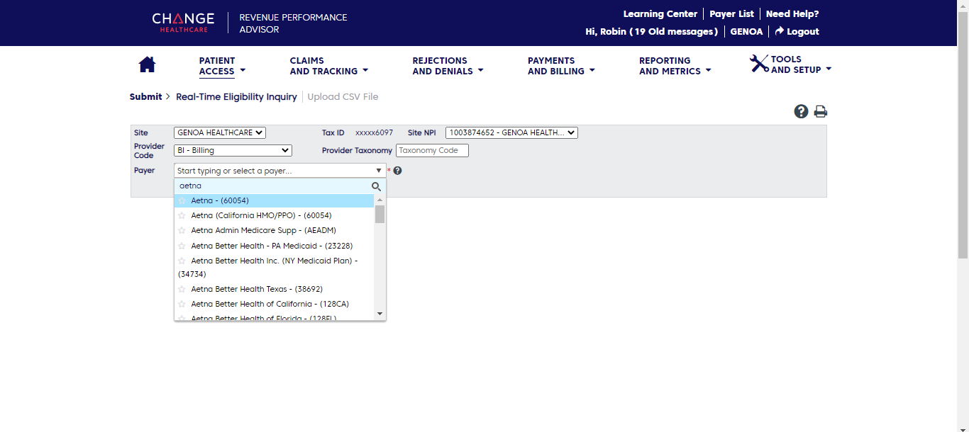 Tip: Clicking the star to the left of the payer name will make it a favorite.