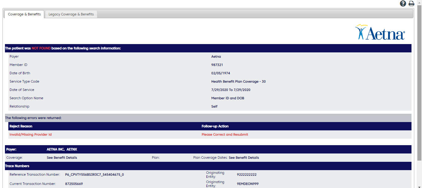 Task 22-01. Task - Real Time Eligibility Check