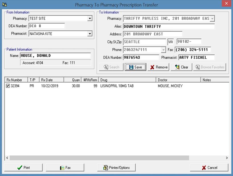 A pop-up stating "sending fax" will appear when transfers are faxed.